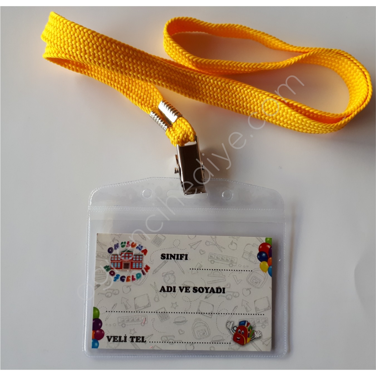 İsim yazılmadan boş olarak gönderilmektedir. (boyun ipi+dış asetat+isimlik)