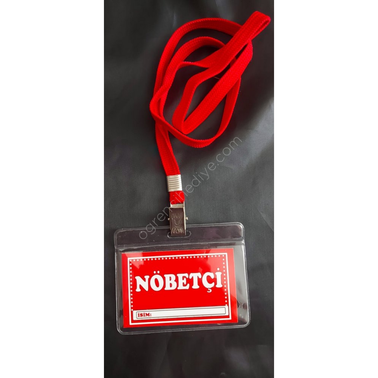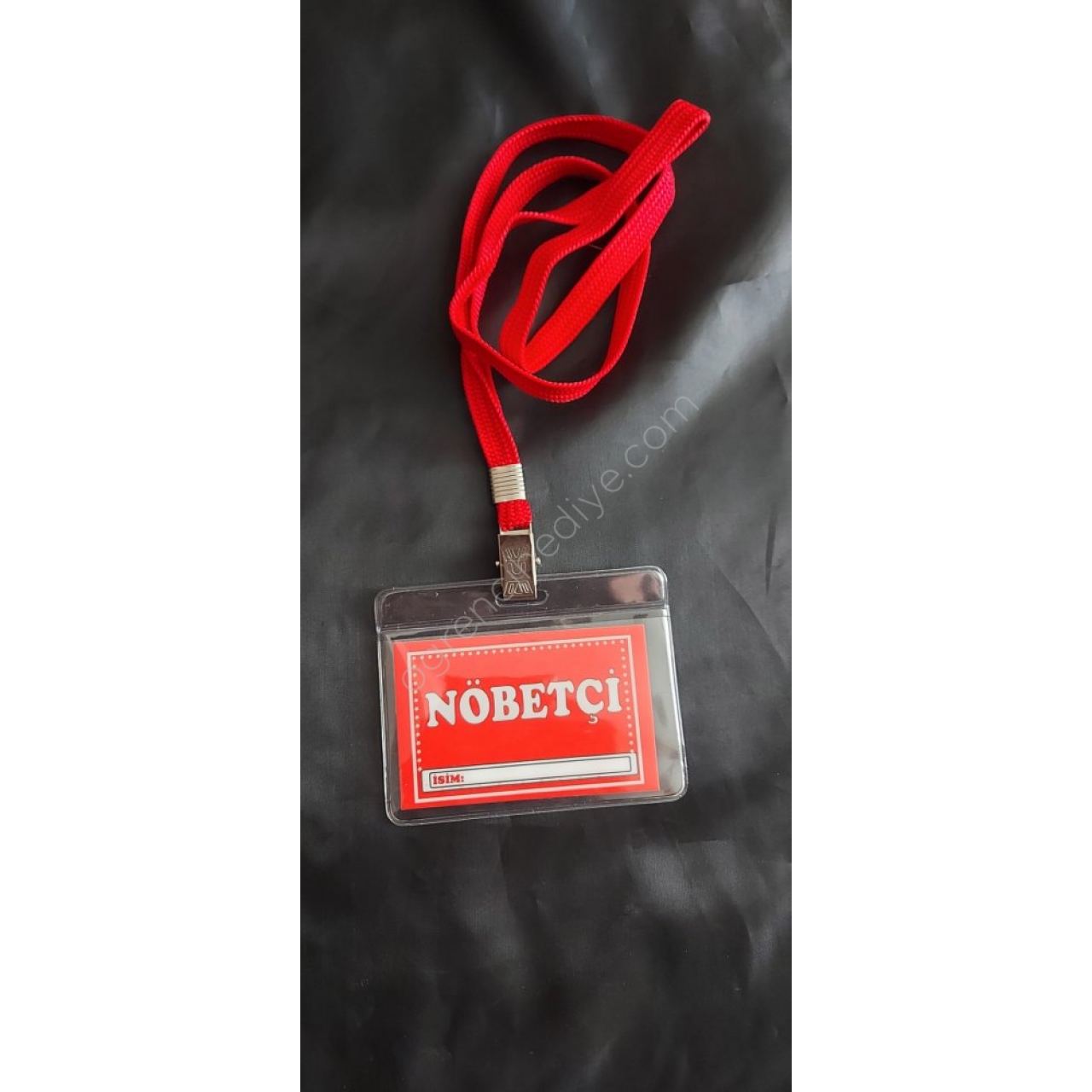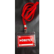 İsim yazılmadan boş olarak gönderilmektedir. (boyun ipi+dış asetat+Nöbetçi kartı)