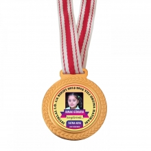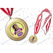 Madalyada Okul adı, Öğretmen adı, Öğrenci adı ve resmi, ve sınıf bilgisi bulunan renkli özel tasarımlı modeldir..