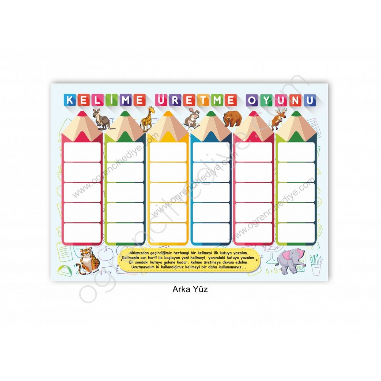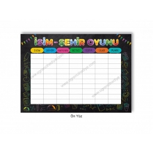 BİR YÜZÜ İSİM ŞEHİR OYUNU, ARKA YÜZÜ KELİME ÜRETME OYUNU İÇİN TASARLANMIŞTIR.